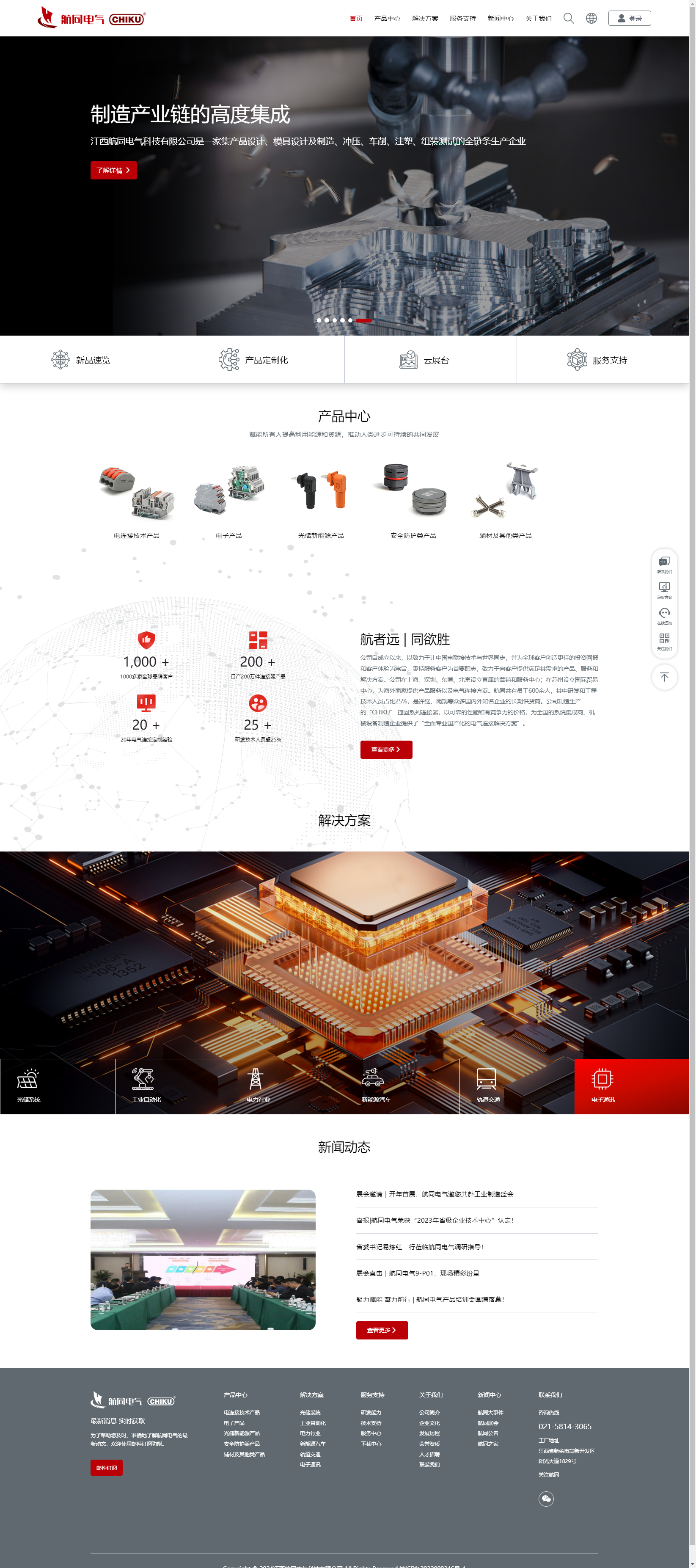 航同电气致力于让中国电联接技术与世界同步,并为全球客户创造更佳的投资回报和客户体验为宗旨,秉持服务客户为首要职志,致力于向客户提供满足其需求的产品、服务和解决方案。 经过二十余年的快速发展,公司已发展为电气连接产品、电缆连接及保护系统行业、光伏新能源行业、新能源汽车行业知名企业,是锦浪、阳光电源、思源高压、富士康、特变电工、国家电网的许继集团、平高集团等核心高端客户的主要供应商;由公司研发设计的金属屏蔽电缆防水接头被广泛运用于汽车领域,是上汽、吉利、宇通、金龙等汽车企业的重要供应商之一。